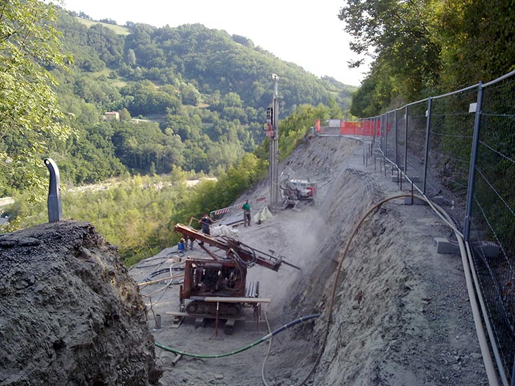I tiranti sono elementi strutturali (attivi o passivi in funzione del carico cui si induce) sottoposti a trazione, adatti a resistere alla spinta delle terre. Sono composti di una parte attiva (gettata) di ancoraggio vero e proprio, e di una parte passiva (libera), vale a dire di trasferimento delle sollecitazioni dalla testata di ancoraggio sul manufatto al terreno. I tiranti sono iniettati a bassa o ad alta pressione, possono essere temporanei o definitivi in riferimento alla durabilità nel tempo. L’armatura può essere composta da trefoli oppure da barra autoperforante. Le chiodature/soil nailing sono strutture di ancoraggio costituite da barre in acciaio aventi lo scopo di stabilizzazione delle pareti rocciose. Spesso è abbinata alla posa di rete paramassi, la quale viene ancorata alle chiodature.